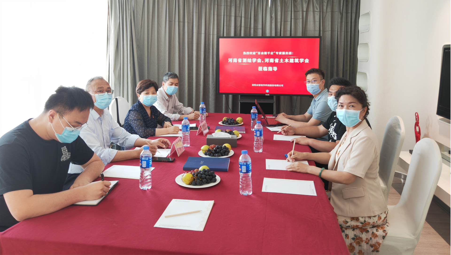 2022年5月24日,河南省測繪學會秘書長周學軍一行、河南省土木建筑學會秘書長王愛菊一行蒞臨我公司指導交流,深入開展“百會鏈千企”科技志愿服務活動。眾智軟件河南省區(qū)域負責人朱朝鋒等參加了此次活動。