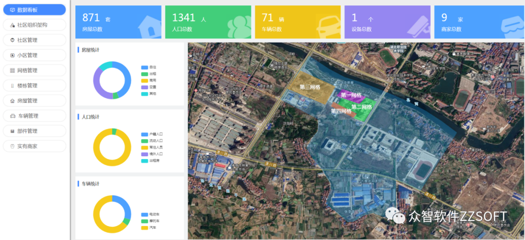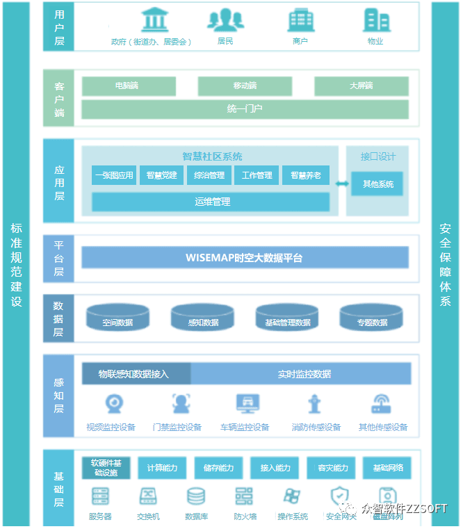 眾智軟件運(yùn)用三維GIS、BIM、物聯(lián)網(wǎng)、云計算、大數(shù)據(jù)、人工智能和5G等新一代信息技術(shù),從服務(wù)和管理兩個層面,構(gòu)建智慧社區(qū)綜合管理平臺,從橫向來看,整合黨建、社會治理、審批服務(wù)、民生等各個領(lǐng)域;從縱向來看,與街道業(yè)務(wù)管理平臺、市級業(yè)務(wù)平臺互聯(lián)互通。