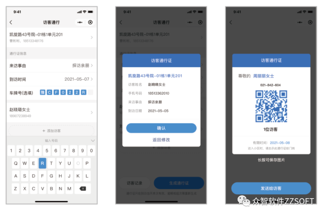 居民通過小程序?qū)ν鈦碓L客進(jìn)行身份登記、信息確認(rèn)、門禁通行、訪客邀請和黑名單等操作,實(shí)現(xiàn)對進(jìn)出社區(qū)人員的高效規(guī)范化管理。