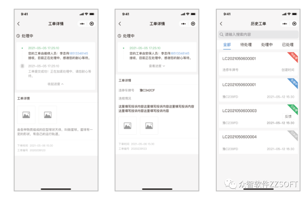居民通過小程序?qū)υO(shè)備故障、違法建筑、暴露垃圾等事件進(jìn)行報事報修,信息錄入報修平臺后,會派單至相關(guān)工作人員,處理結(jié)果將反饋至居民用戶端,雙方可進(jìn)行雙向評價,實(shí)現(xiàn)事件的閉環(huán)處理。