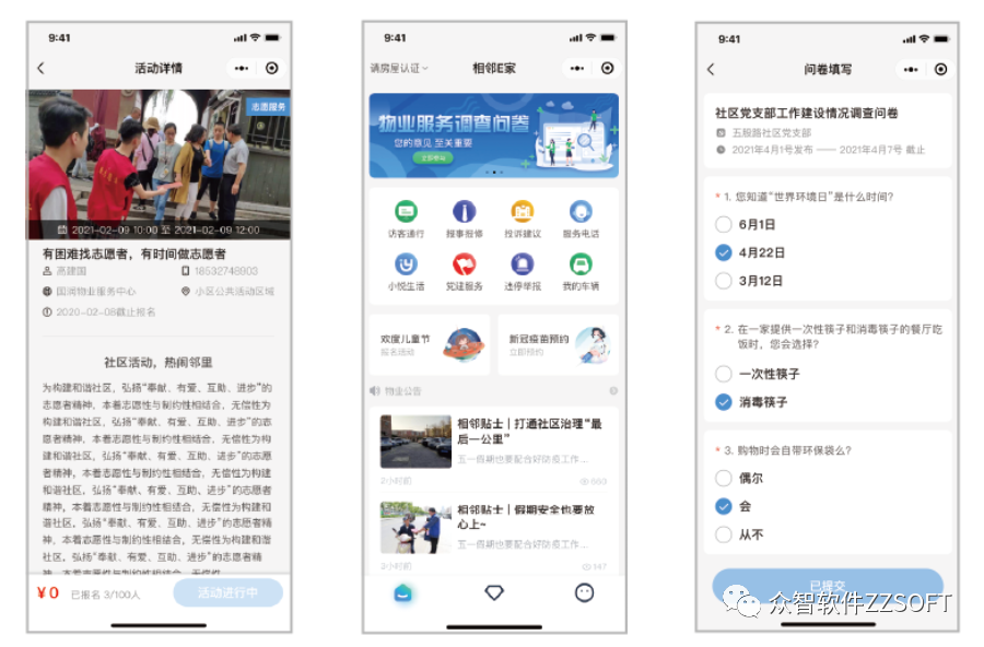 包括房屋認(rèn)證、租客認(rèn)證、車輛認(rèn)證、問卷調(diào)查、活動報名、在線投票、投訴建議等。